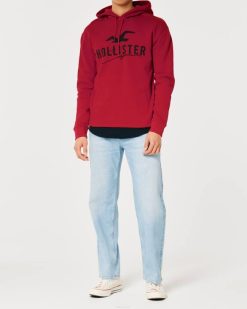 majica s kapuljačom s logotipom Crvena muškarci Hollister vrhovi ZV8T1034