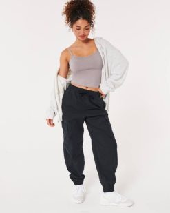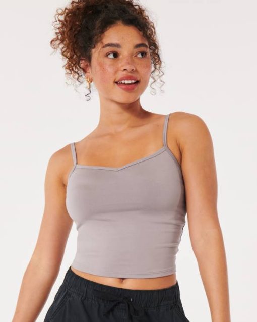 majica s portretnim izrezom od bešavne tkanine ljubičasto siva žene Hollister vrhovi ZV8T382