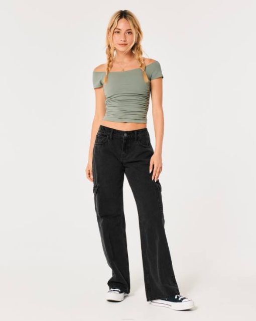na ili izvan ramena smokirani gornji dio struka crno žene Hollister vrhovi ZV8T107