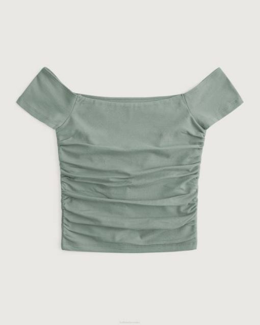 majica s rubovima spuštenih ramena maslinasto zelena žene Hollister vrhovi ZV8T103