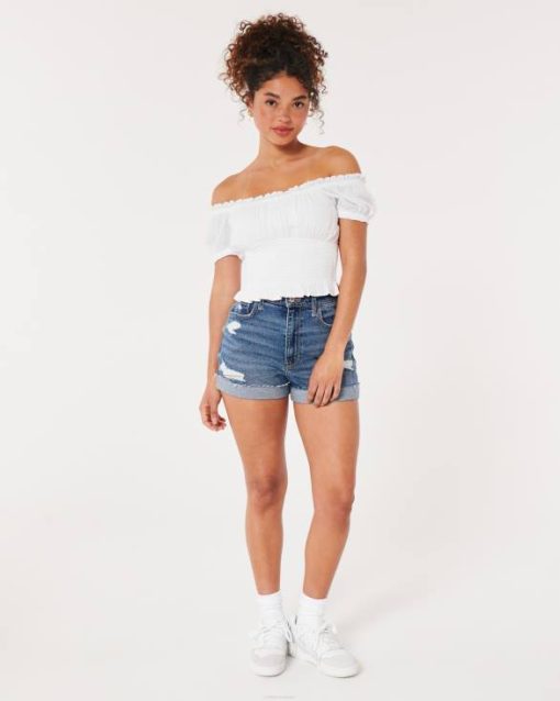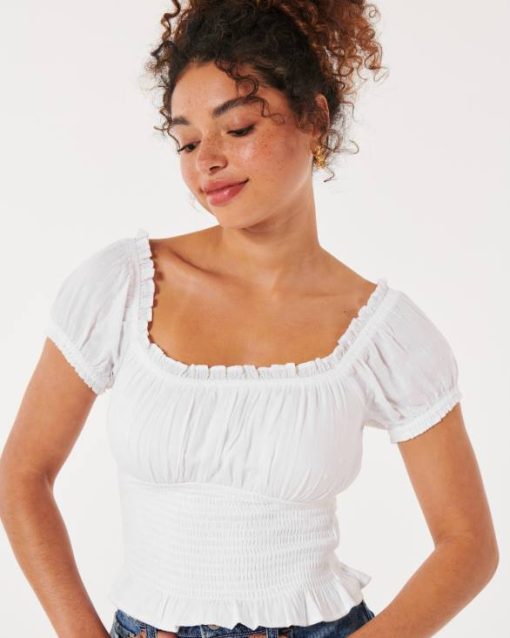 na ili izvan ramena smokirani gornji dio struka bijela žene Hollister vrhovi ZV8T105