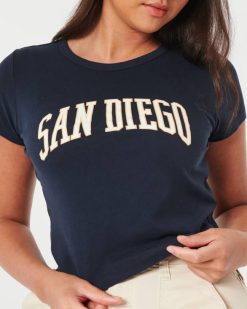 opuštena dječja majica s grafikom san diega mornarsko plava žene Hollister vrhovi ZV8T118