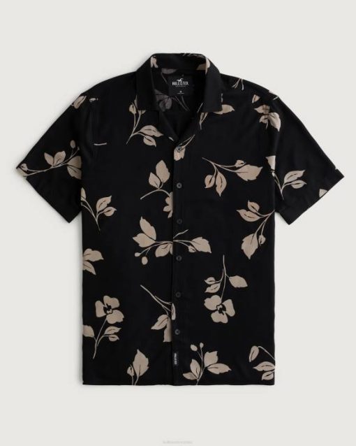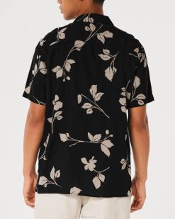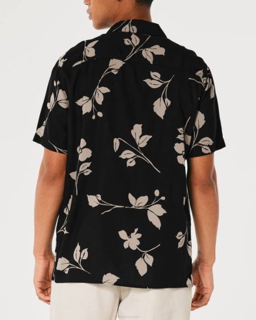 opuštena košulja s uzorkom kratkih rukava crni cvjetni muškarci Hollister vrhovi ZV8T836