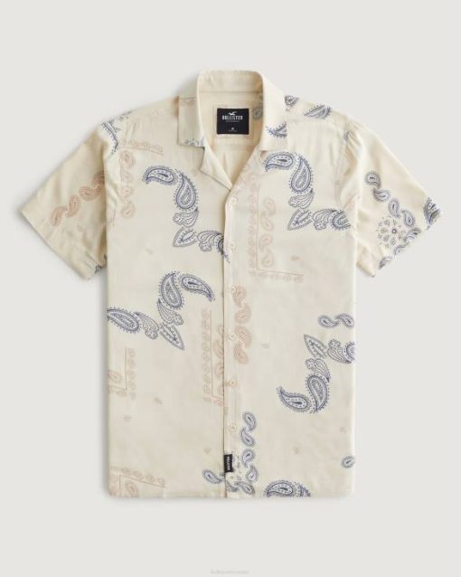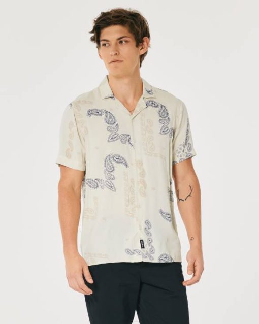 opuštena košulja s uzorkom kratkih rukava krem uzorak muškarci Hollister vrhovi ZV8T907