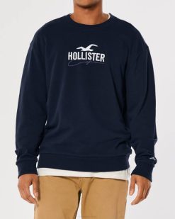 opuštena majica s logom crew mornarica muškarci Hollister vrhovi ZV8T865