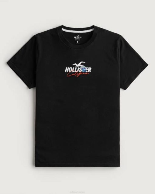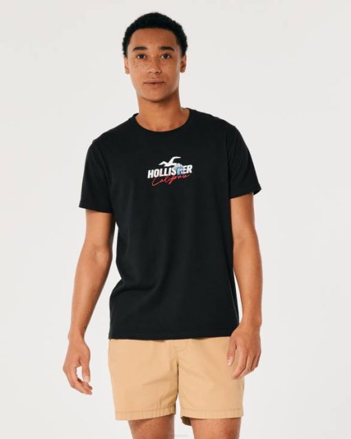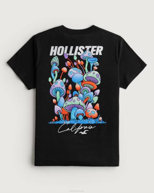 opuštena majica s logotipom gljive crno muškarci Hollister vrhovi ZV8T874