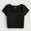 dječja majica s četvrtastim izrezom od bešavne tkanine crno žene Hollister vrhovi ZV8T67