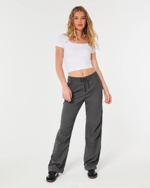 padobranske hlače s podesivim usponom tamno siva žene Hollister dna ZV8T680