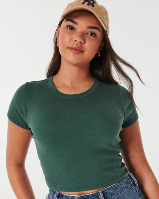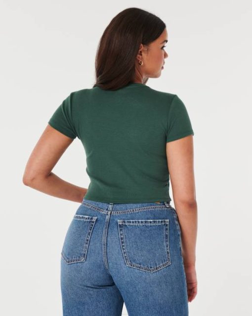 pamučna dječja majica zelena žene Hollister vrhovi ZV8T7
