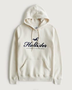 laka majica s kapuljačom s logotipom krema žene Hollister vrhovi ZV8T320