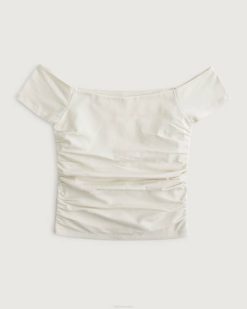 majica s rubovima spuštenih ramena krema žene Hollister vrhovi ZV8T116