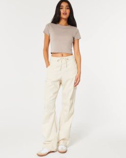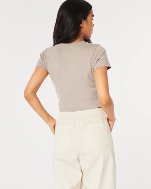 majica s rubovima spuštenih ramena maslinasto zelena žene Hollister vrhovi ZV8T103
