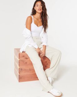 dječja majica s četvrtastim izrezom od bešavne tkanine krema žene Hollister vrhovi ZV8T197