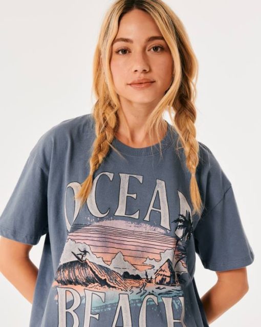 prevelika majica s grafikom Ocean Beach plava žene Hollister vrhovi ZV8T10