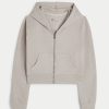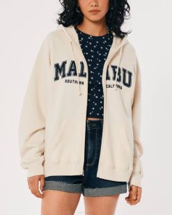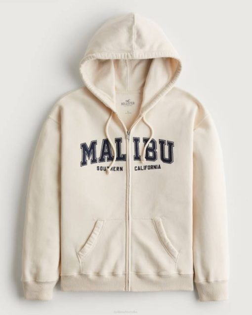 prevelika majica s kapuljačom malibu california s punim patentnim zatvaračem krema žene Hollister vrhovi ZV8T154