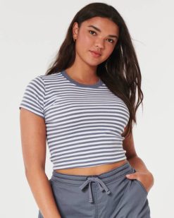 pamučna majica za bebe bijela pruga žene Hollister vrhovi ZV8T160
