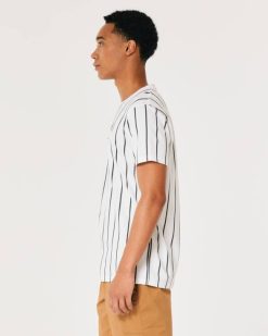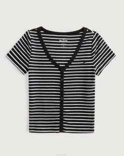 rebrasti gornji dio s v-izrezom na kopčanje bijela pruga žene Hollister vrhovi ZV8T348