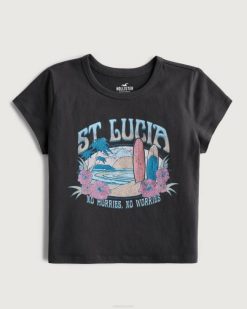 opušteno sv. lucia grafička dječja majica tamno siva žene Hollister vrhovi ZV8T252