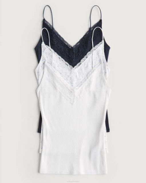 rebrasta čipka obrub cami 3-pak mornarsko plavo-bijeli cvjetni žene Hollister vrhovi ZV8T298