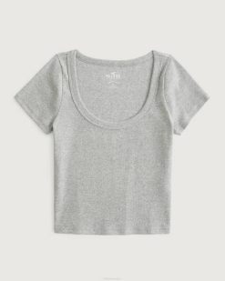 rebrasta dječja majica svijetlo vrijesko siva žene Hollister vrhovi ZV8T60