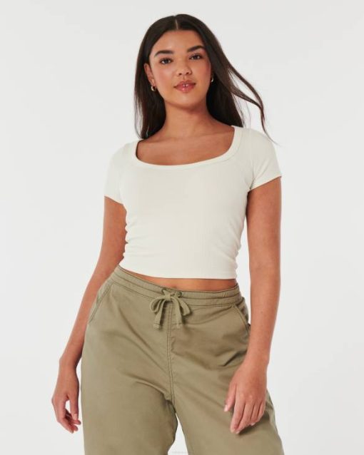 rebrasta dječja majica krema žene Hollister vrhovi ZV8T228