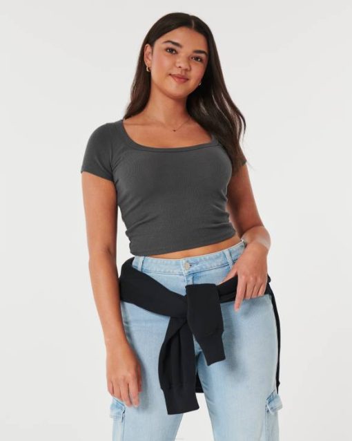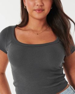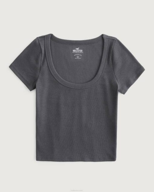 rebrasta dječja majica tamno sivi stan žene Hollister vrhovi ZV8T270