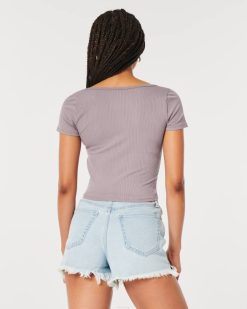 rebrasta majica od bešavne tkanine u obliku srca ljubičasto siva žene Hollister vrhovi ZV8T326