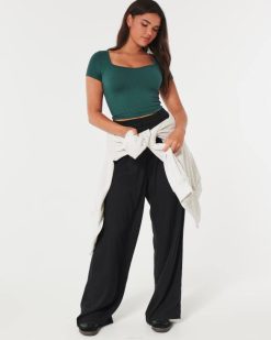 dječja majica s četvrtastim izrezom od bešavne tkanine crno žene Hollister vrhovi ZV8T67