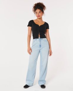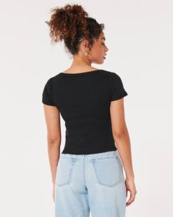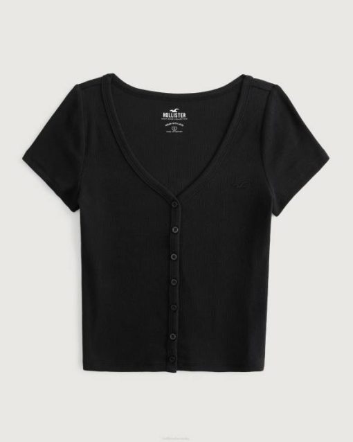 rebrasti gornji dio s v-izrezom na kopčanje crno žene Hollister vrhovi ZV8T243