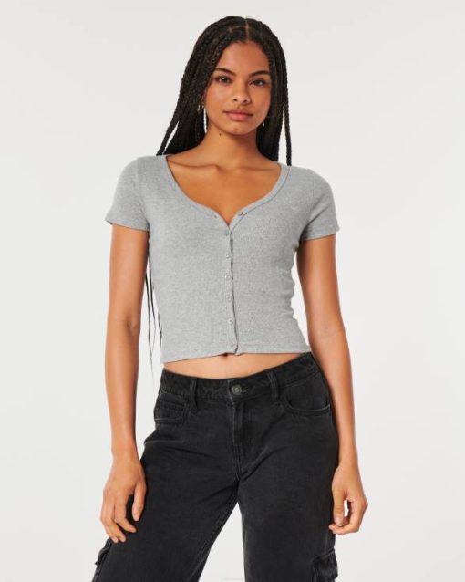rebrasti gornji dio s v-izrezom na kopčanje vrijesak siv žene Hollister vrhovi ZV8T335