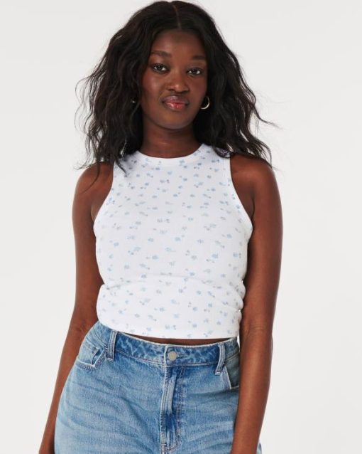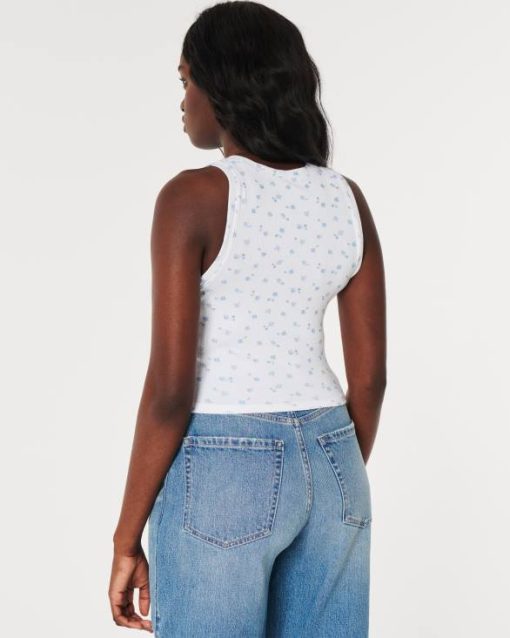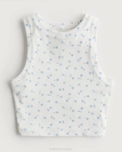 rebrasti rezervoar visokog grla bijela s plavim cvjetovima žene Hollister vrhovi ZV8T237