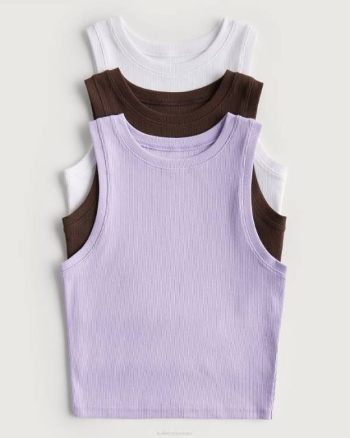 rebrasti spremnik visokog grla 3 kom bijelo-smeđe-ljubičasta žene Hollister vrhovi ZV8T85