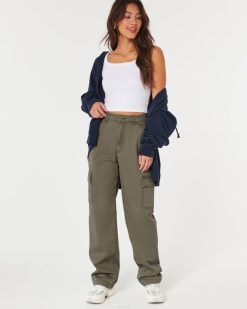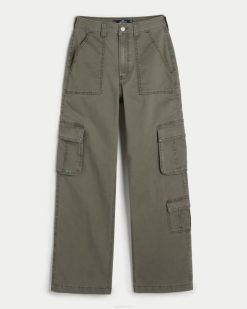 široke cargo hlače s 3 džepa ultra visokog struka maslinasto zelena žene Hollister dna ZV8T511