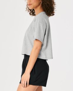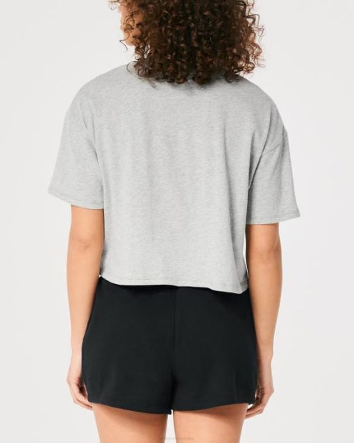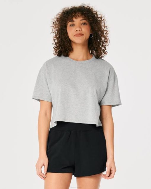 skraćena majica kratkih rukava svijetlo vrijesko siva žene Hollister vrhovi ZV8T292