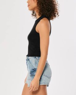 na ili izvan ramena smokirani gornji dio struka crno žene Hollister vrhovi ZV8T107