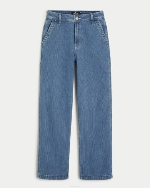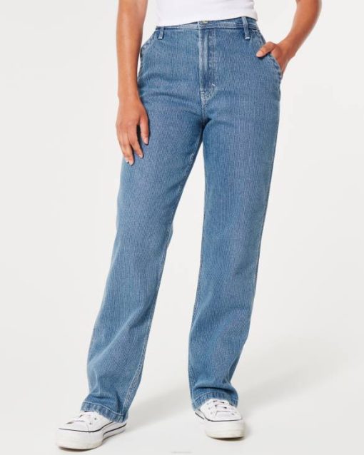 dizajnirane s laskavim ultra visokim strukom i udobnom opuštenom nogavicom, ove simpatične traperice u stolarskom stilu imaju super tanke željezničke pruge. izrađen od našeg ultra-udobnog vintage rastezljivog trapera u srednjem stupnju pranja.
