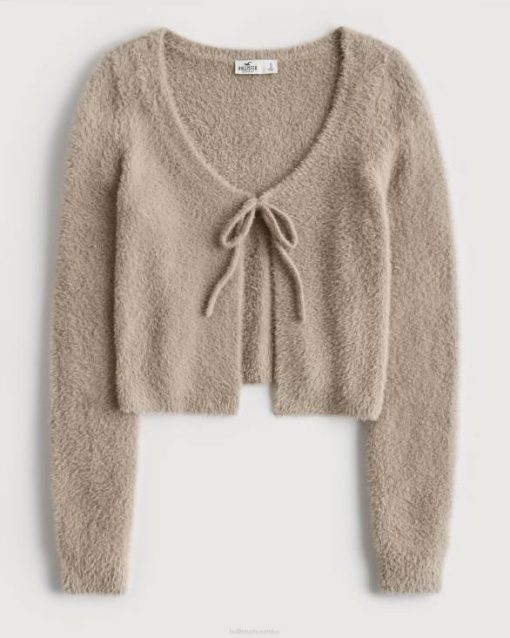 udoban skraćeni kardigan s prednjim vezanjem svijetlosmeđa žene Hollister vrhovi ZV8T352