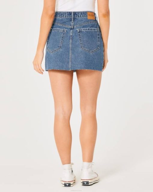ultra visoka tamna mini suknja od ispranog trapera srednje pranje žene Hollister dna ZV8T593