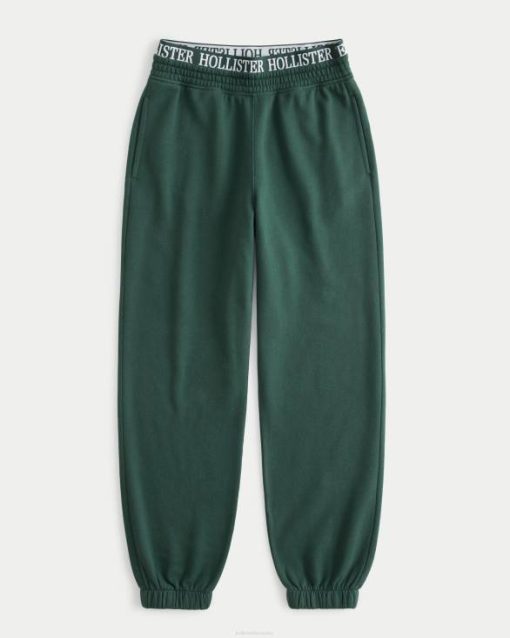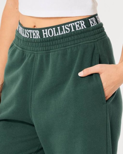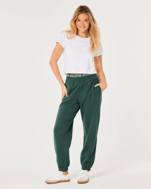 ultravisoke vunene joggerice s logotipom do struka tamnozelene žene Hollister dna ZV8T690