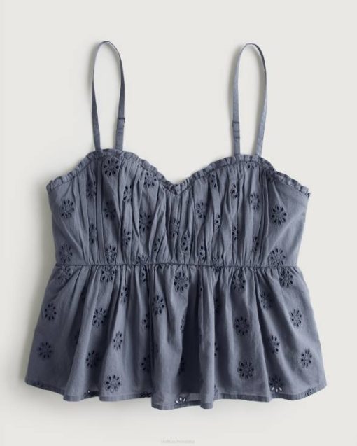 super sladak i nevjerojatno mekan, ovaj top dizajniran je s laskavom babydoll siluetom i ima naborane detalje kroz grudi, naboran dekolte i lepršavu suknju. izvezeni detalji ušica po cijeloj površini, podesive naramenice, mekana smokirana poleđina.