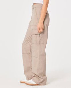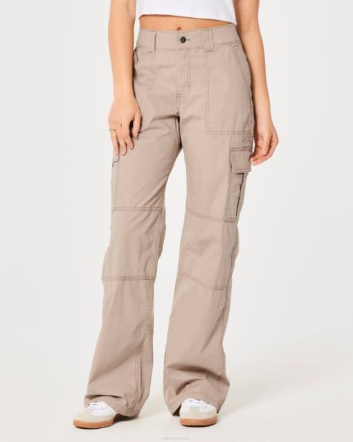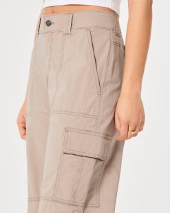 mekane hlače od poplina dizajnirane s udobnim širokim nogavicama i bočnim džepovima za teret. laskavi visoki struk, detalji u šavovima.