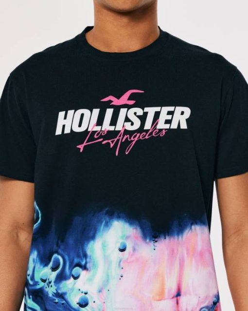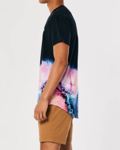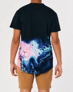 zakrivljeni porub majica s efektom pranja logotipa crna s ružičastim printom muškarci Hollister vrhovi ZV8T828