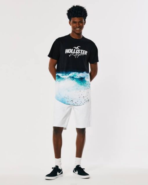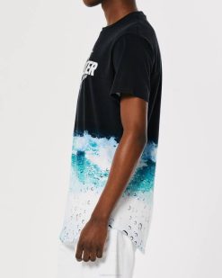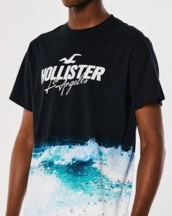 zakrivljeni porub majica s efektom pranja logotipa crni ispis muškarci Hollister vrhovi ZV8T844