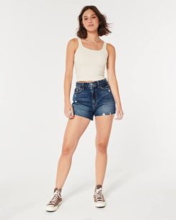 ove ultra-udobne kratke hlače izrađene su od našeg vintage rastezljivog trapera. s opuštenim mama krojem, neujednačenim detaljima, izblijedjelim i brkovima. ultra visokog struka.