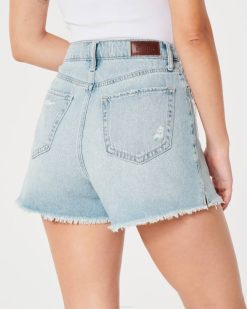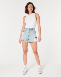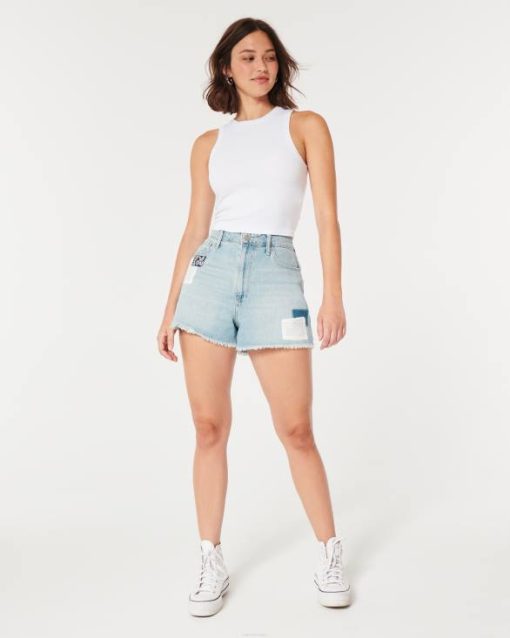 dizajniran s udobnim opuštene mamine kroje, ove kratke hlače od laganog ispranog trapera imaju laskavi ultra visoki struk, patchwork detalje, izblijedjele i brkove. pohabanih rubova. izrađen od našeg ultra-udobnog vintage rastezljivog trapera.