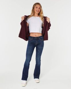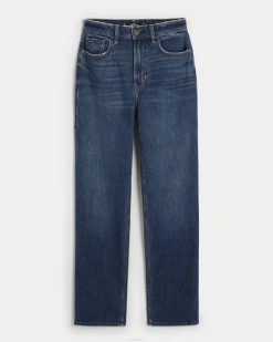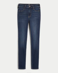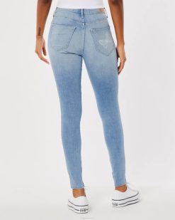 zaobljene visoke srednje isprane traperice s printom leptira, super uske traperice srednje pranje žene Hollister dna ZV8T732