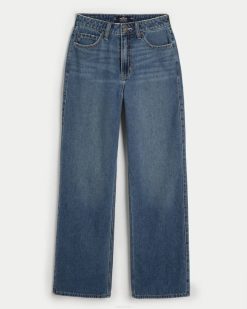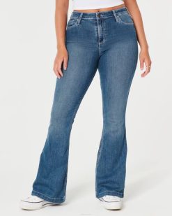 smršavite kroz bedra i proširene od koljena do ruba, ove traperice srednje boje imaju laskavi visoki struk i suptilno izbljeđivanje kroz bedro.